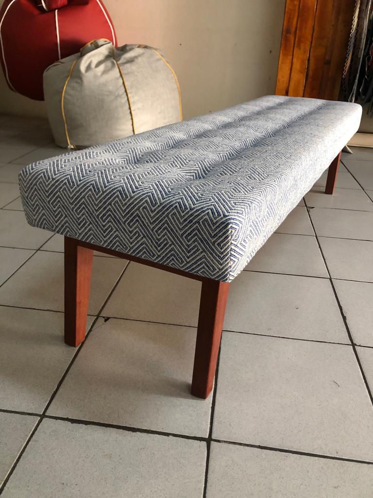 BANQUETA COM BOTÕES TECIDO RISCAS