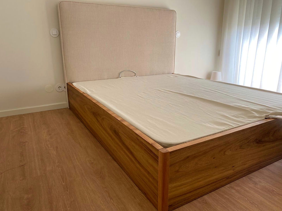 CAMA ELEVATÓRIA EM MADEIRA AUSTRÁLIA COM CABECEIRA EM TECIDO